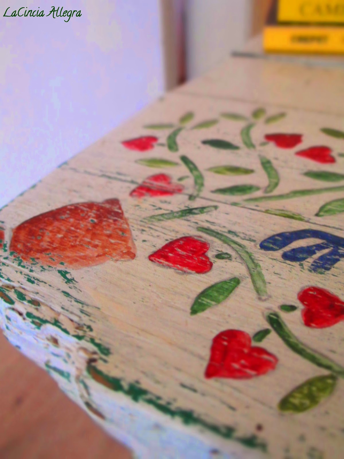 un'altra passata con mano leggera di cartavetrata... e i disegni sembrano lì da sempre!